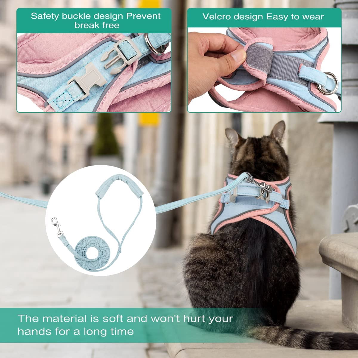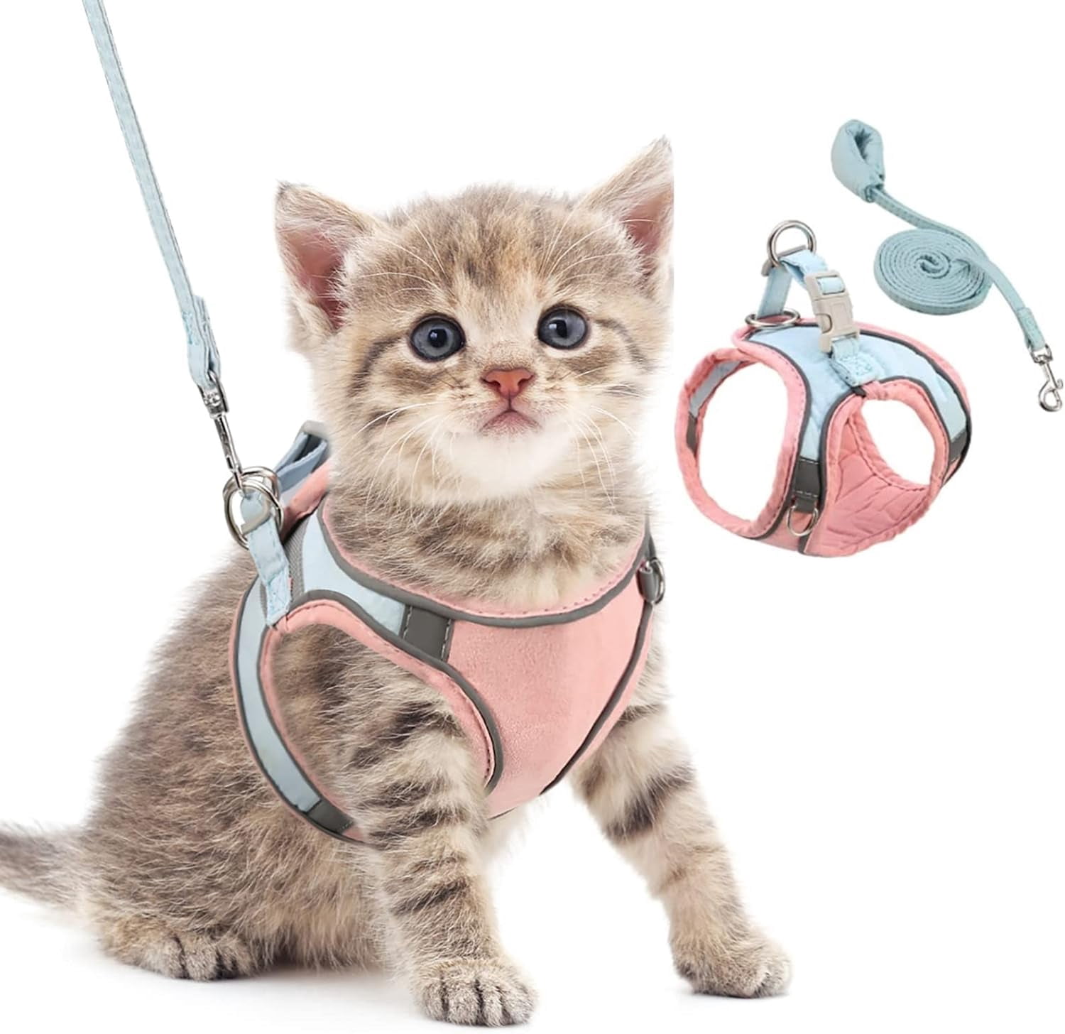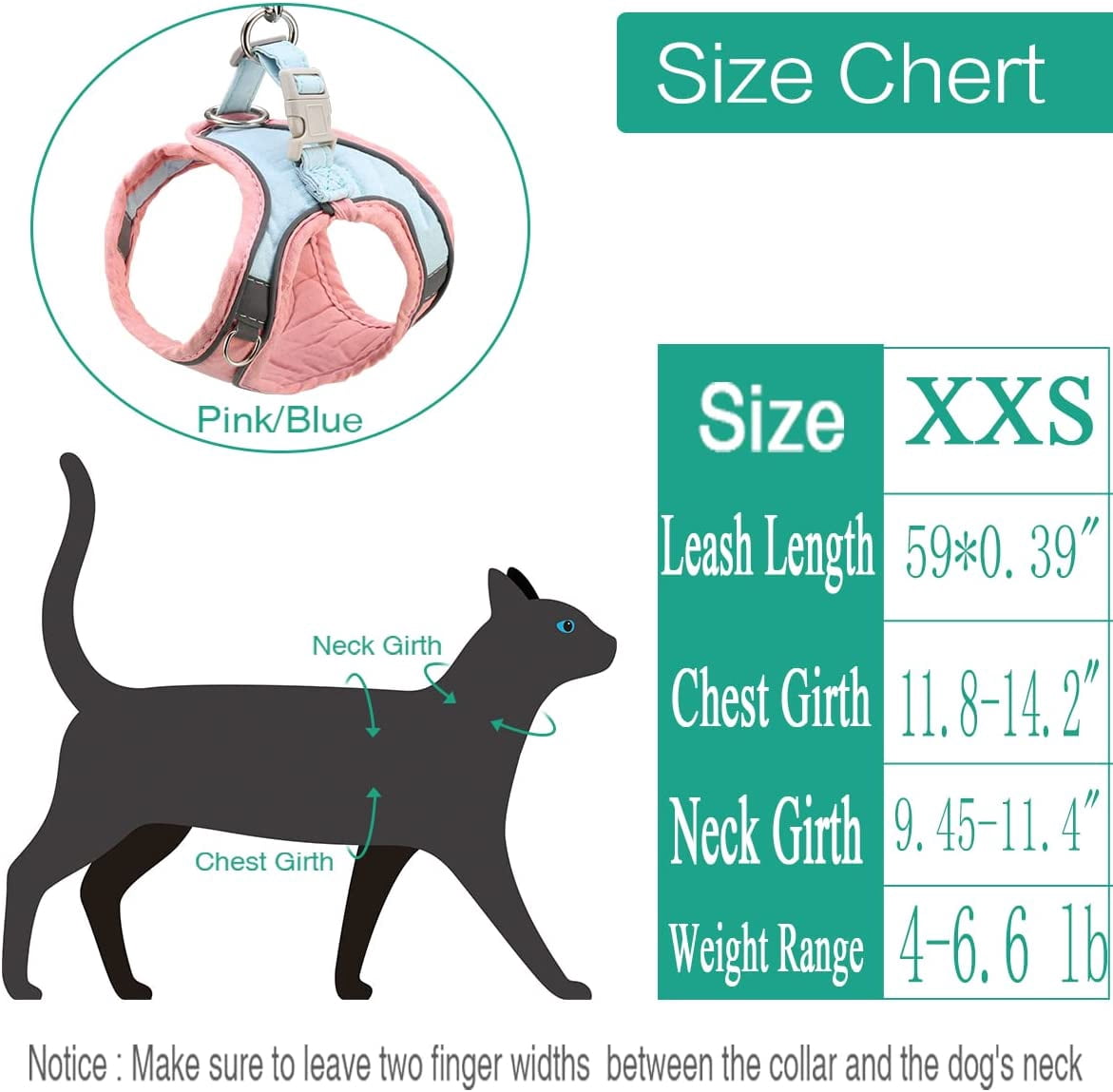 “Pet Harness & Leash Set, Breathable Vest with Reflective Straps, Adjustable for Small Cats, Dogs & Rabbits (10-6.6 lbs), Pink & Blue”