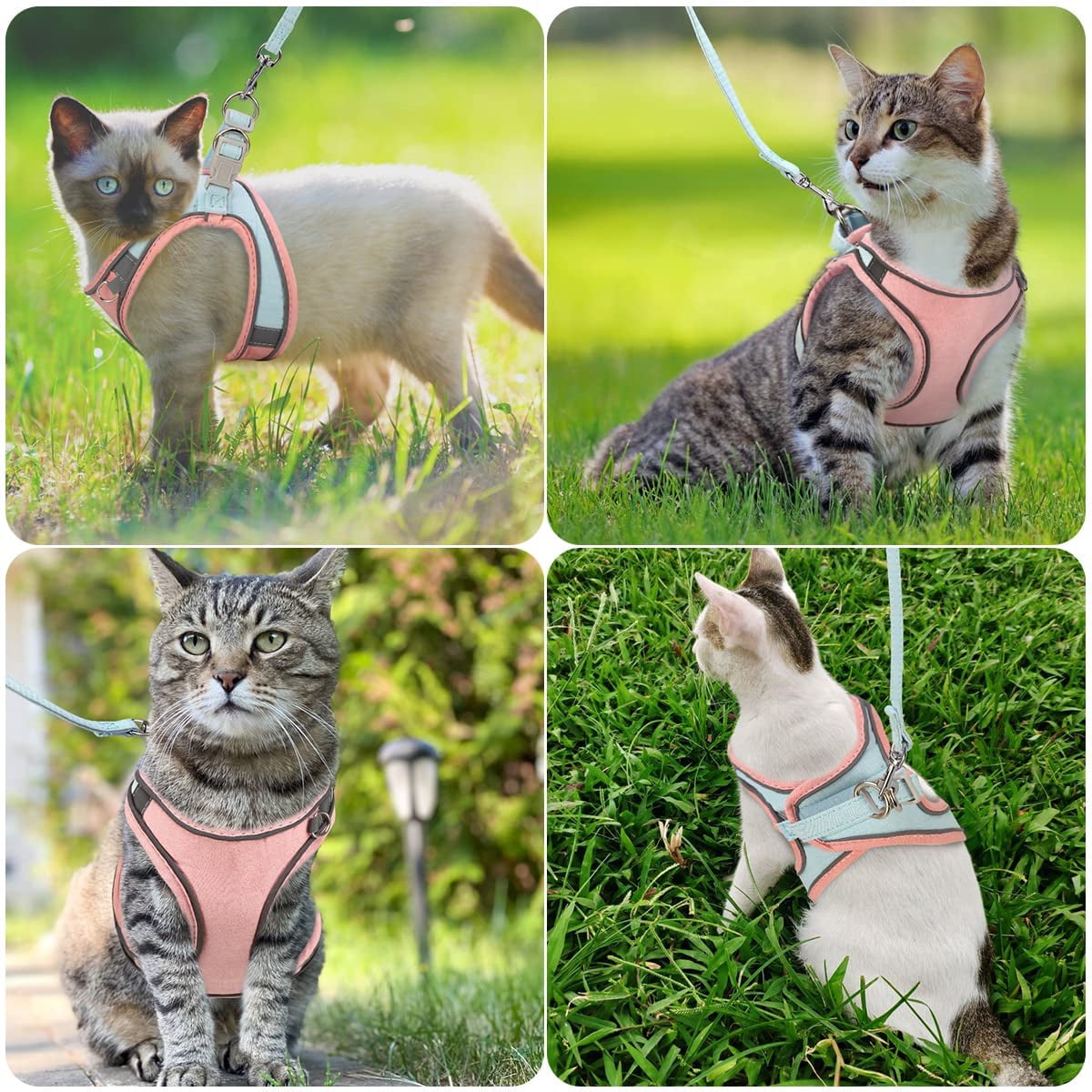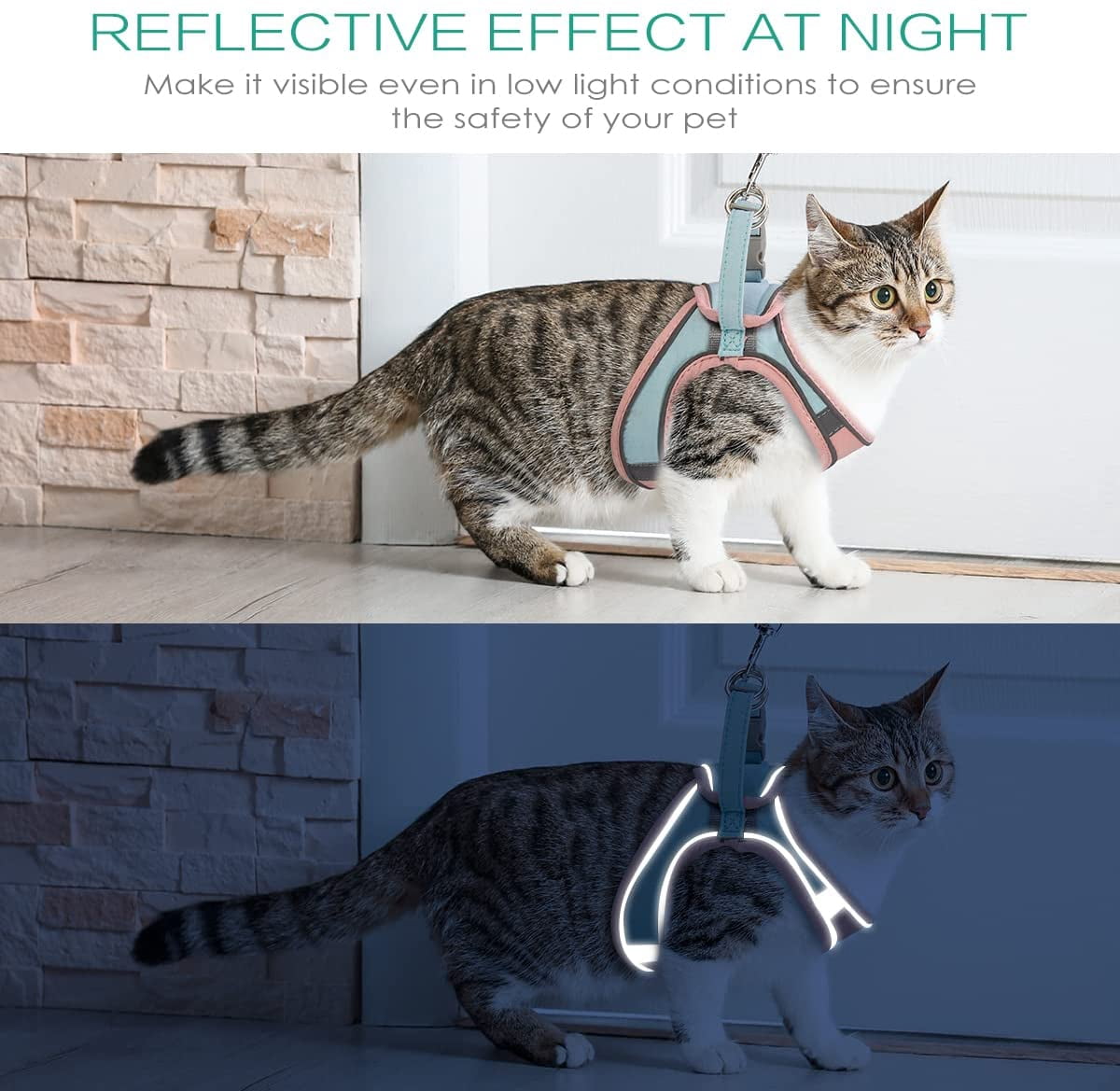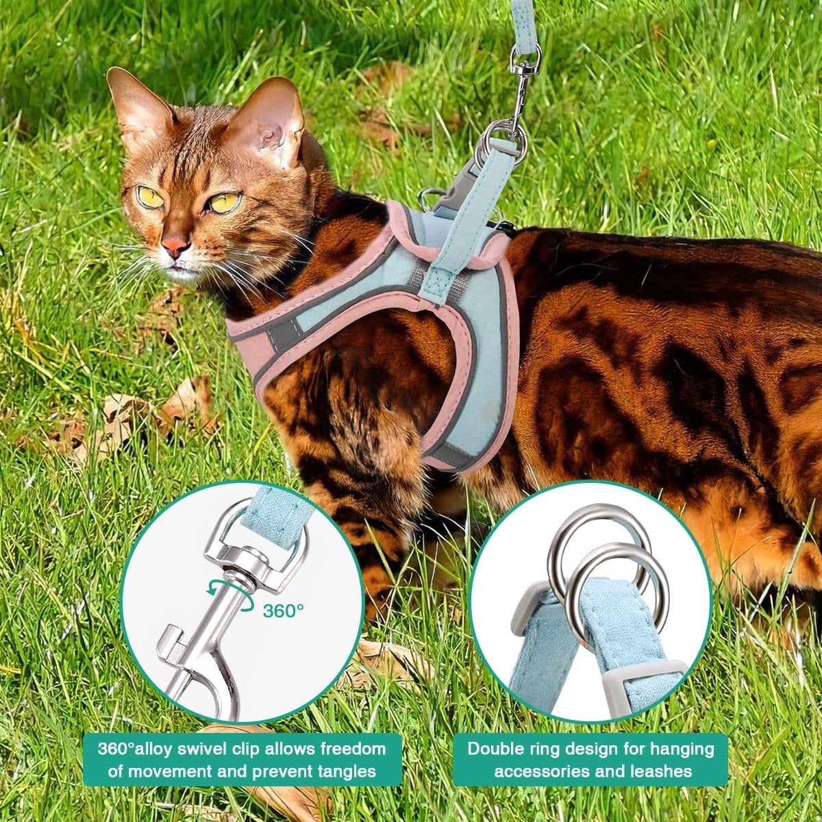 “Pet Harness & Leash Set, Breathable Vest with Reflective Straps, Adjustable for Small Cats, Dogs & Rabbits (10-6.6 lbs), Pink & Blue”