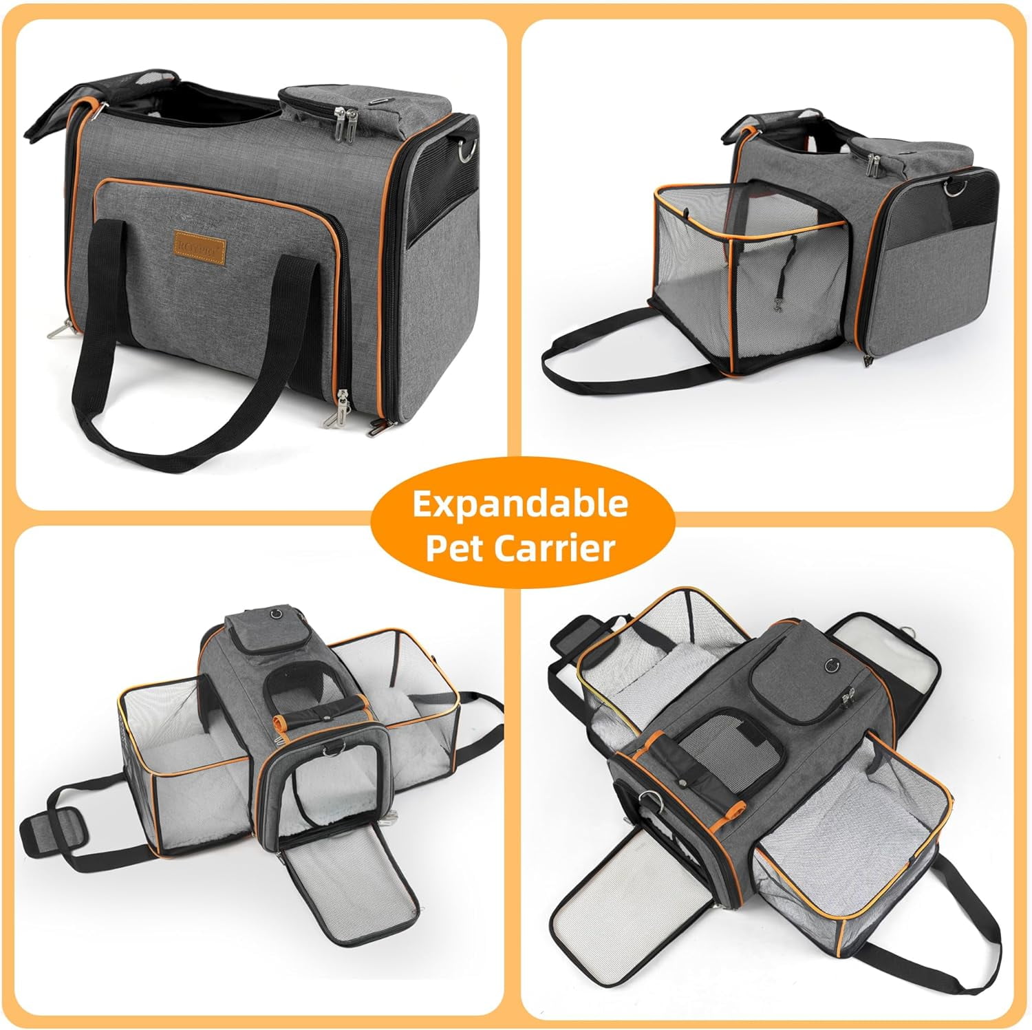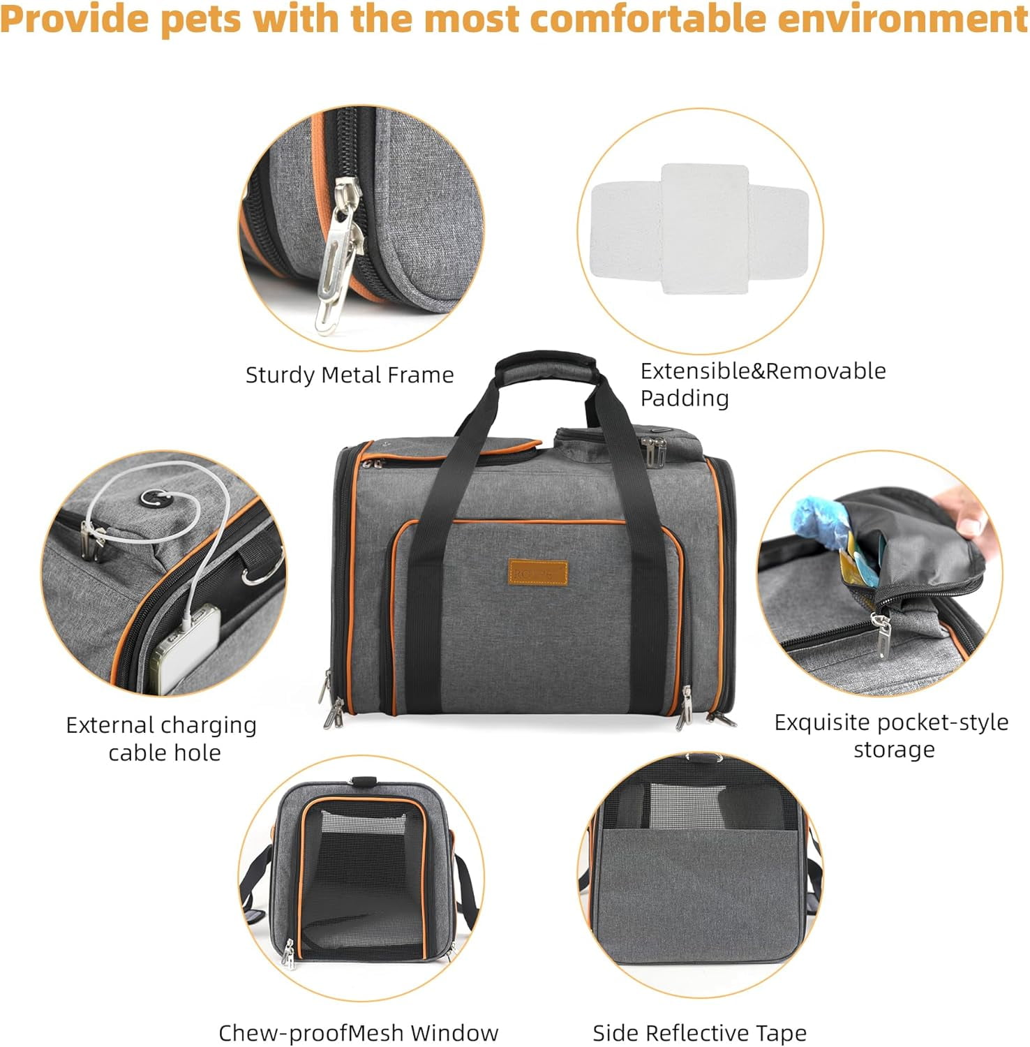 Portable Pet Carrier Bag for Cats and Small Dogs, Foldable Soft-Sided Travel Carrier with Mesh, Airline Approved, Up to 15 Lbs, Grey