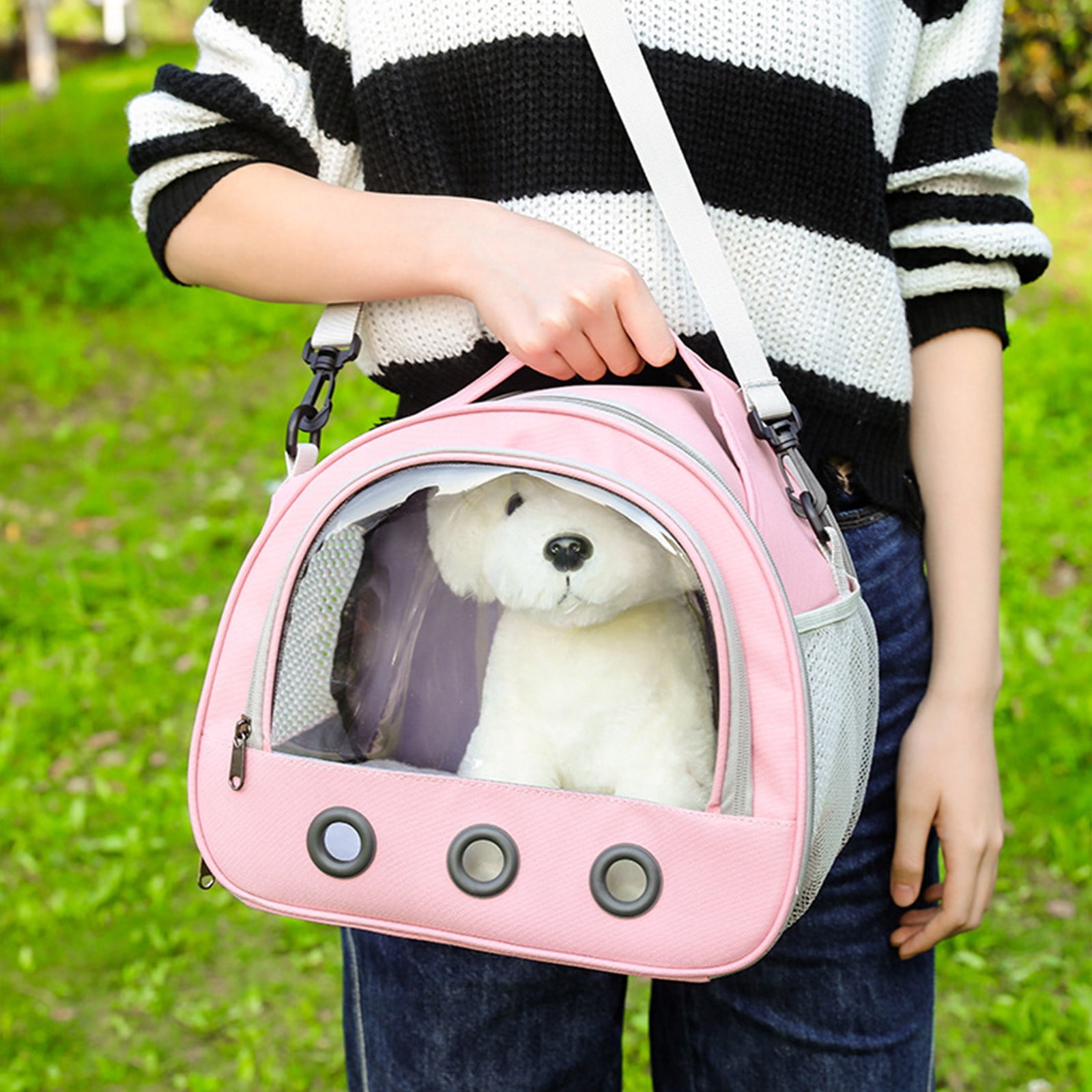 - 1. Secure and Breathable Comfort: Features ventilated mesh panels that promote airflow, helping your pet feel cool during travel. The secure, enclosed design provides a sense of calm for your small companion.
