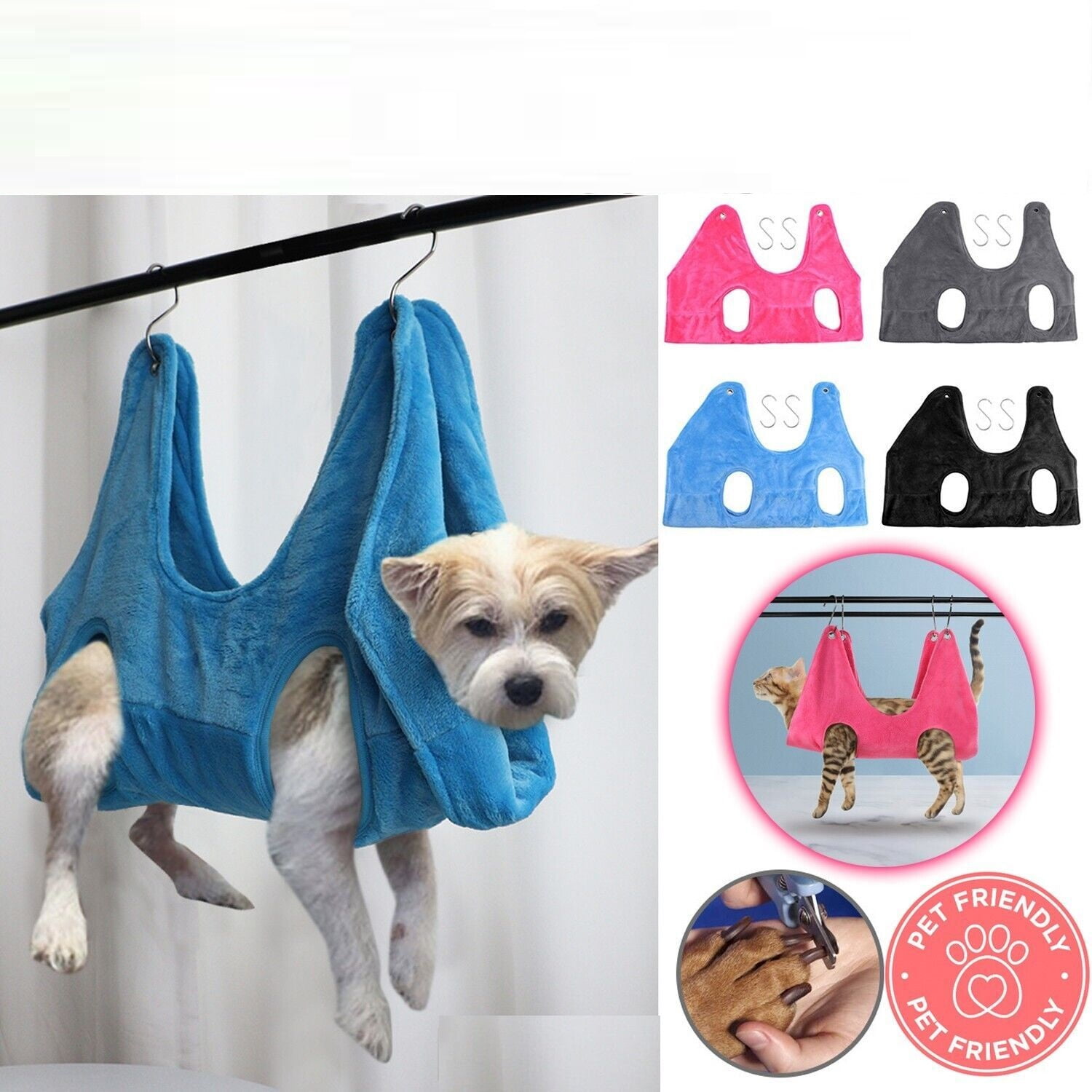 Color(s): Black, Gray, Pink, Blue Material: High Quality Soft Plush Pet Safe Cotton Features: Breathable & Easy to Use Size(s): Small, Medium, Large Use(s): Bathing, Washing, Trimming, Taking Medicine, Cleaning Teeth and Ears, Eye Drops, etc. Package includes: 1 x Portable Pet Dog Cat Grooming Hanging Hammock Harness Breathable Groom Helper US (Please Select Size & Color From Above Menu)