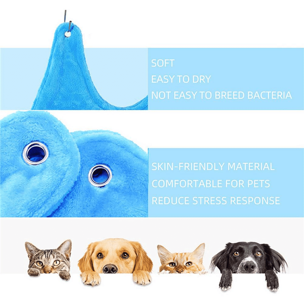 Easy Setup & Adjustable Support Simply place your pet’s legs through the designated openings and suspend the hammock using included hooks. The breathable fabric and adjustable design help pets feel at ease while being groomed.