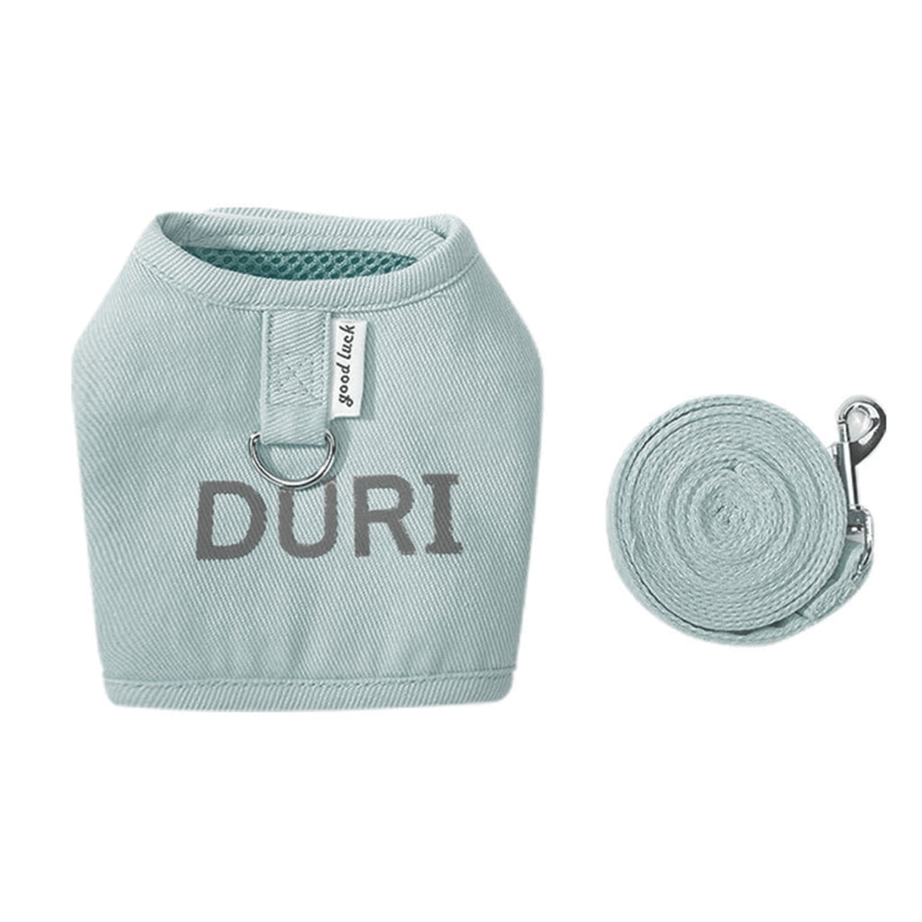 This harness features a unique design with a sturdy buckle and leash, providing durability and reliability.