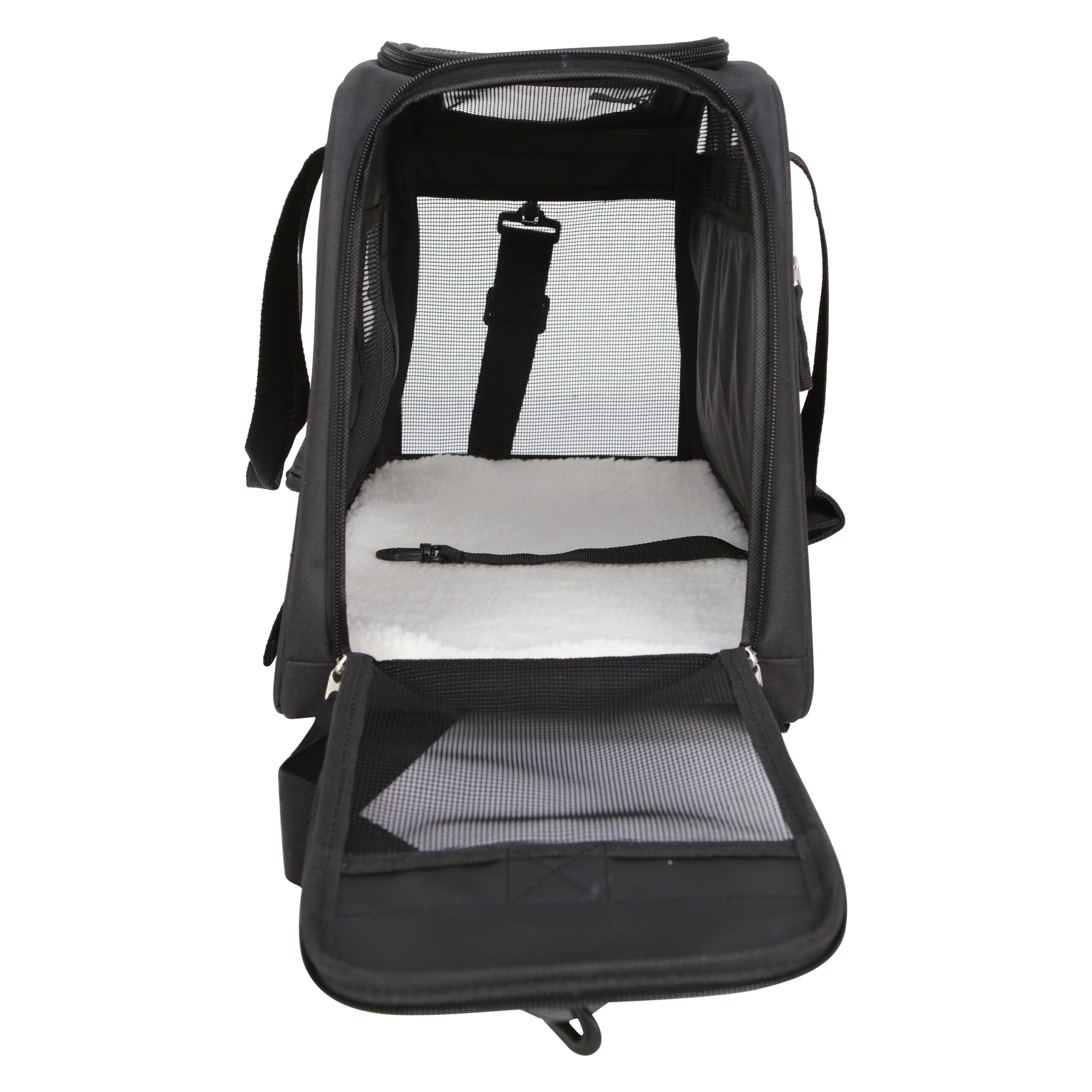 - Built-in seat belt strap located inside the carrier