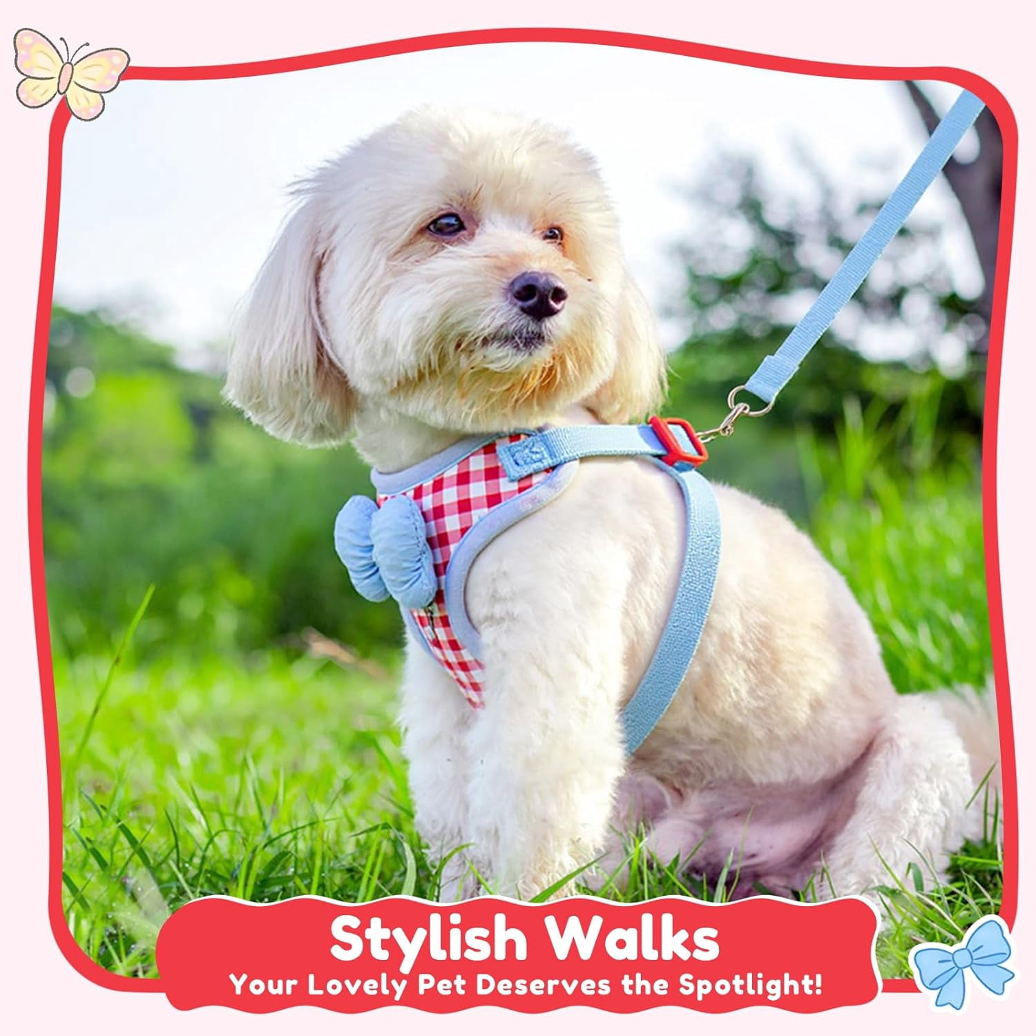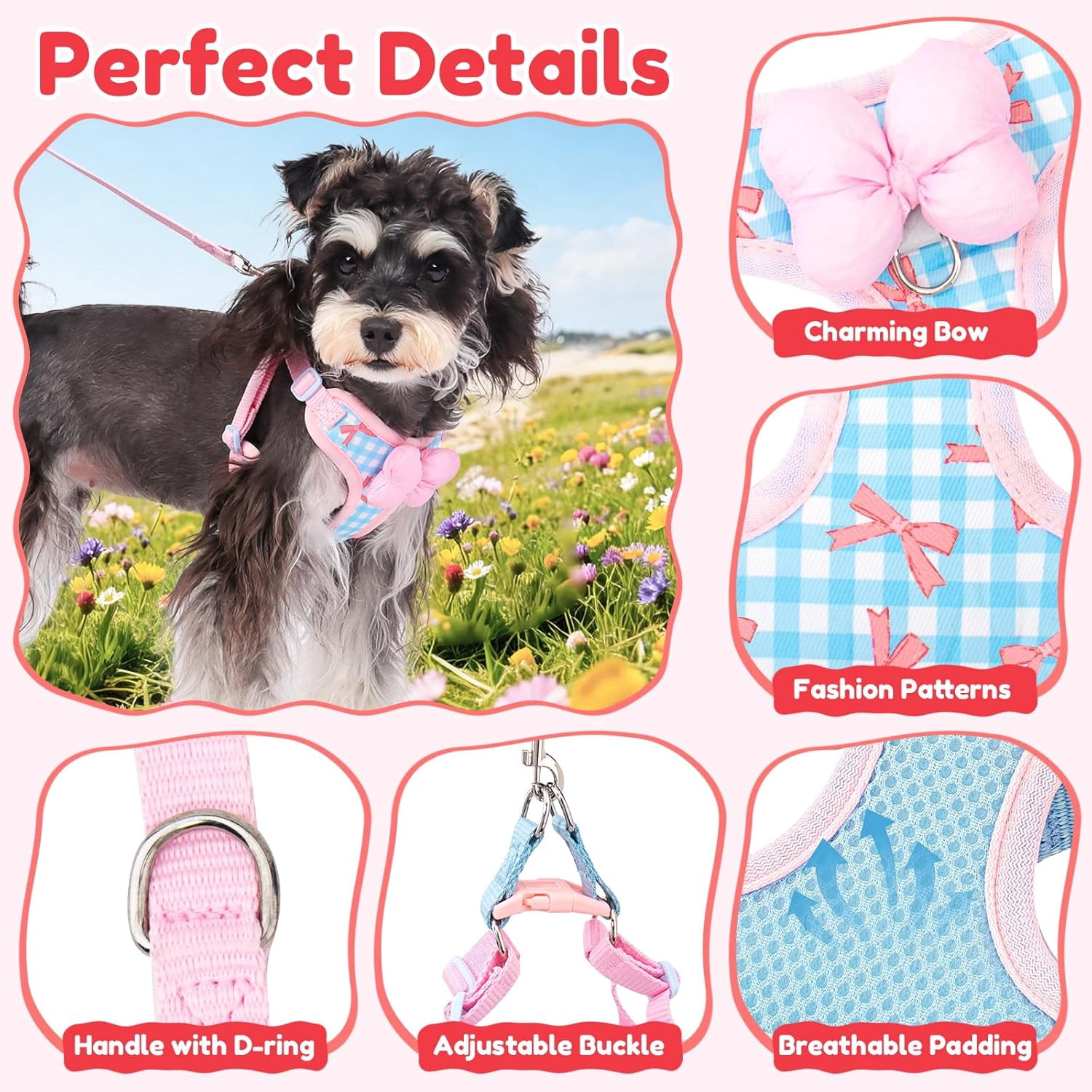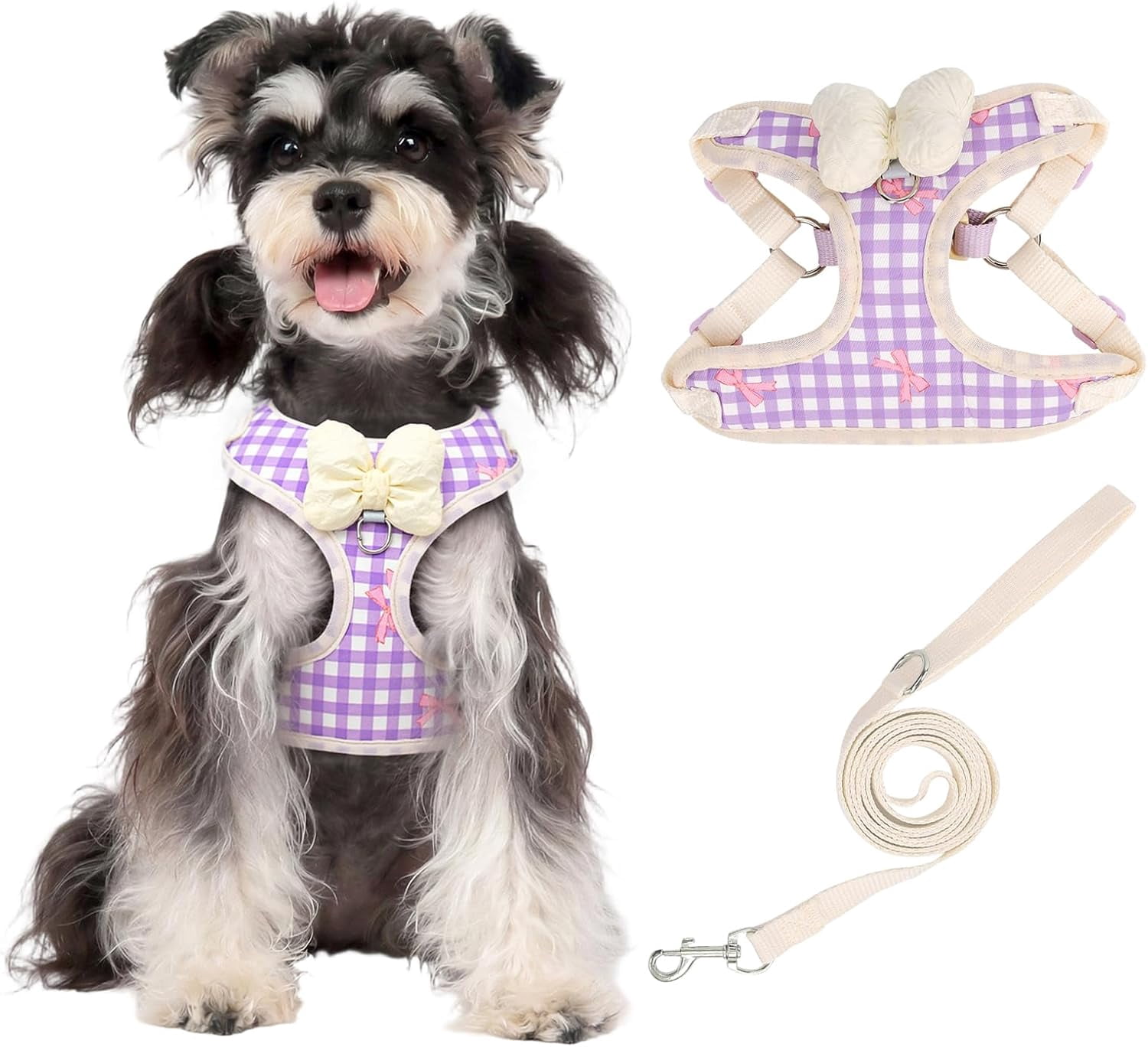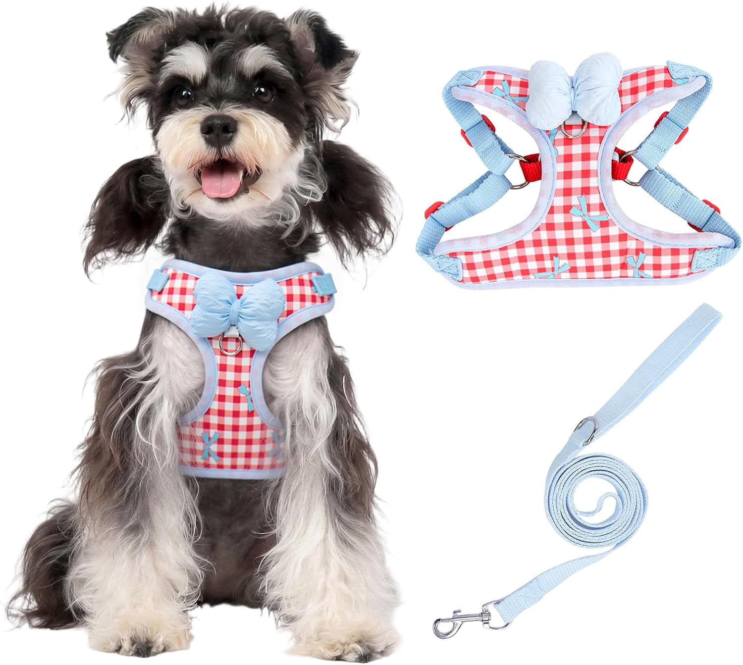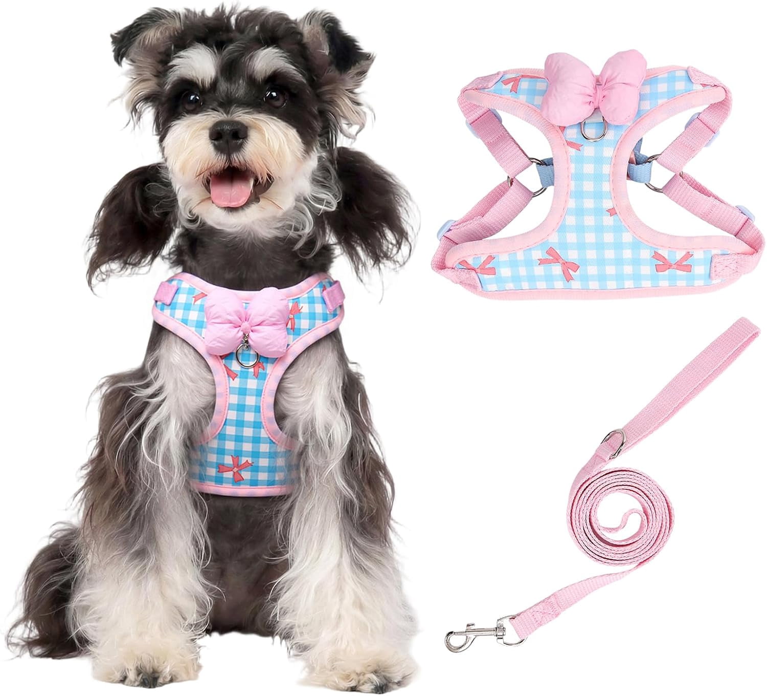 Step-In Dog & Cat Harness with Leash, No Pull Adjustable Reflective Soft Vest with Bow for Small Pets