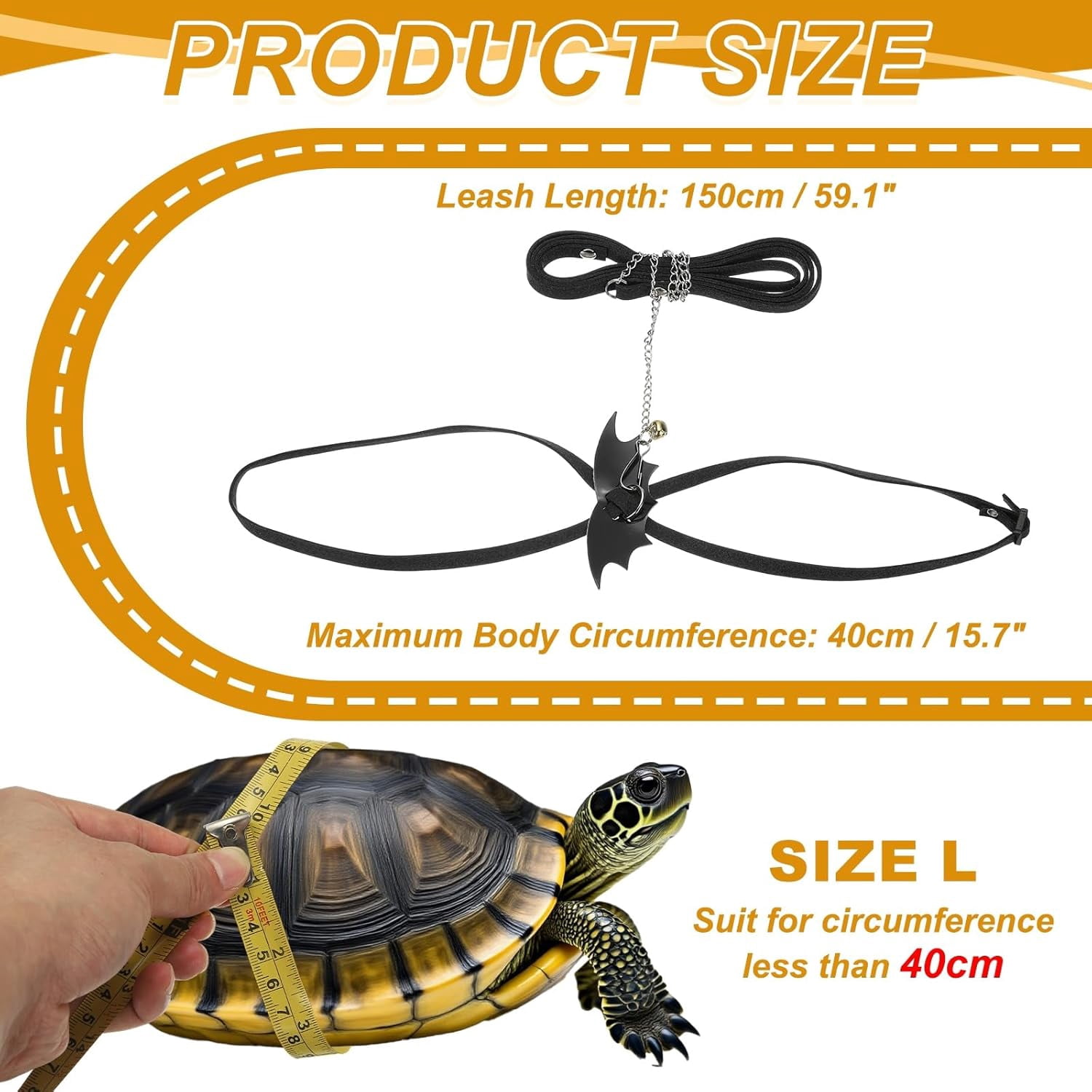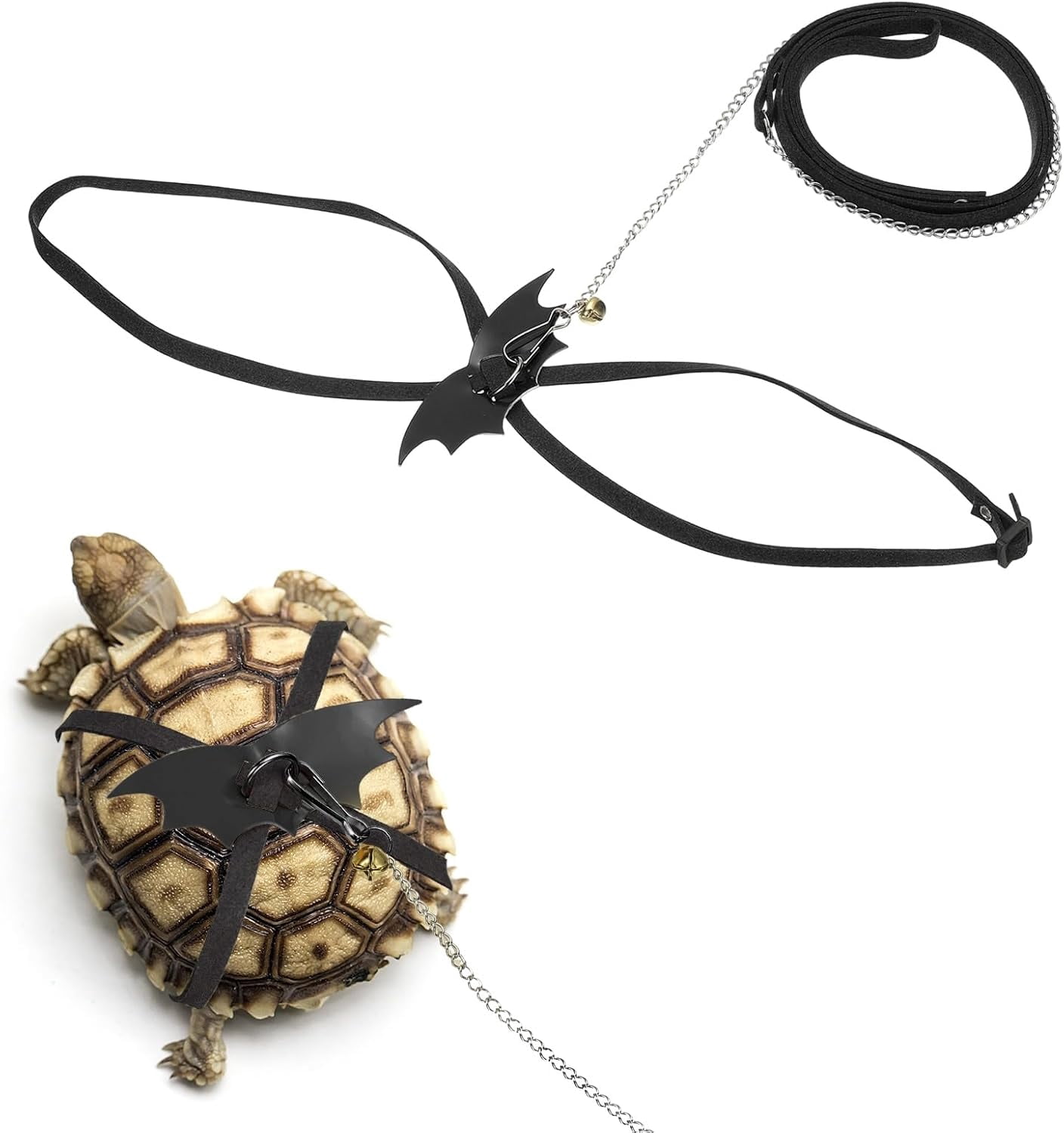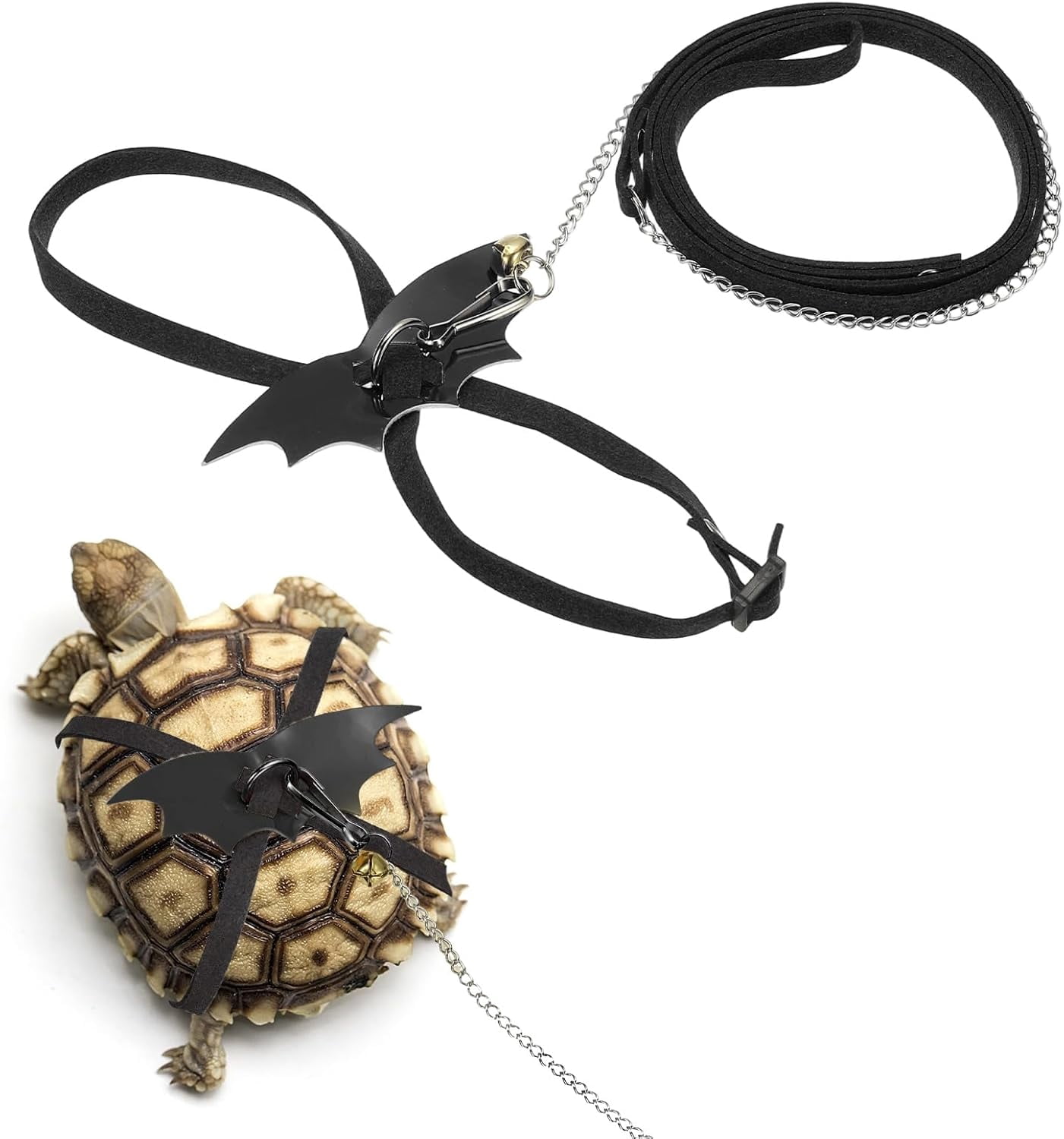 Tortoise Leash Harness, Adjustable Turtle Chest Collar with Bell & Wings, Leather, Large, Black