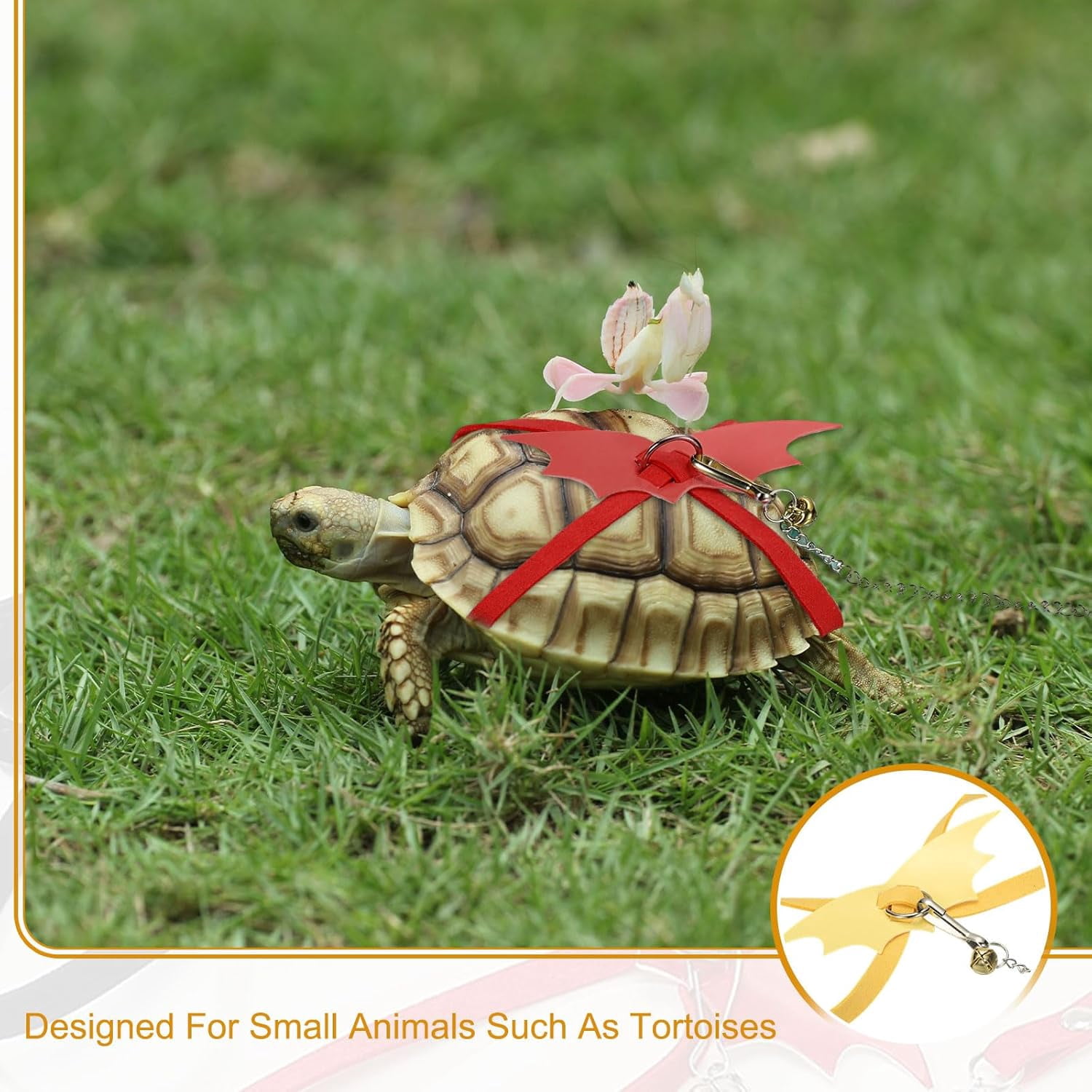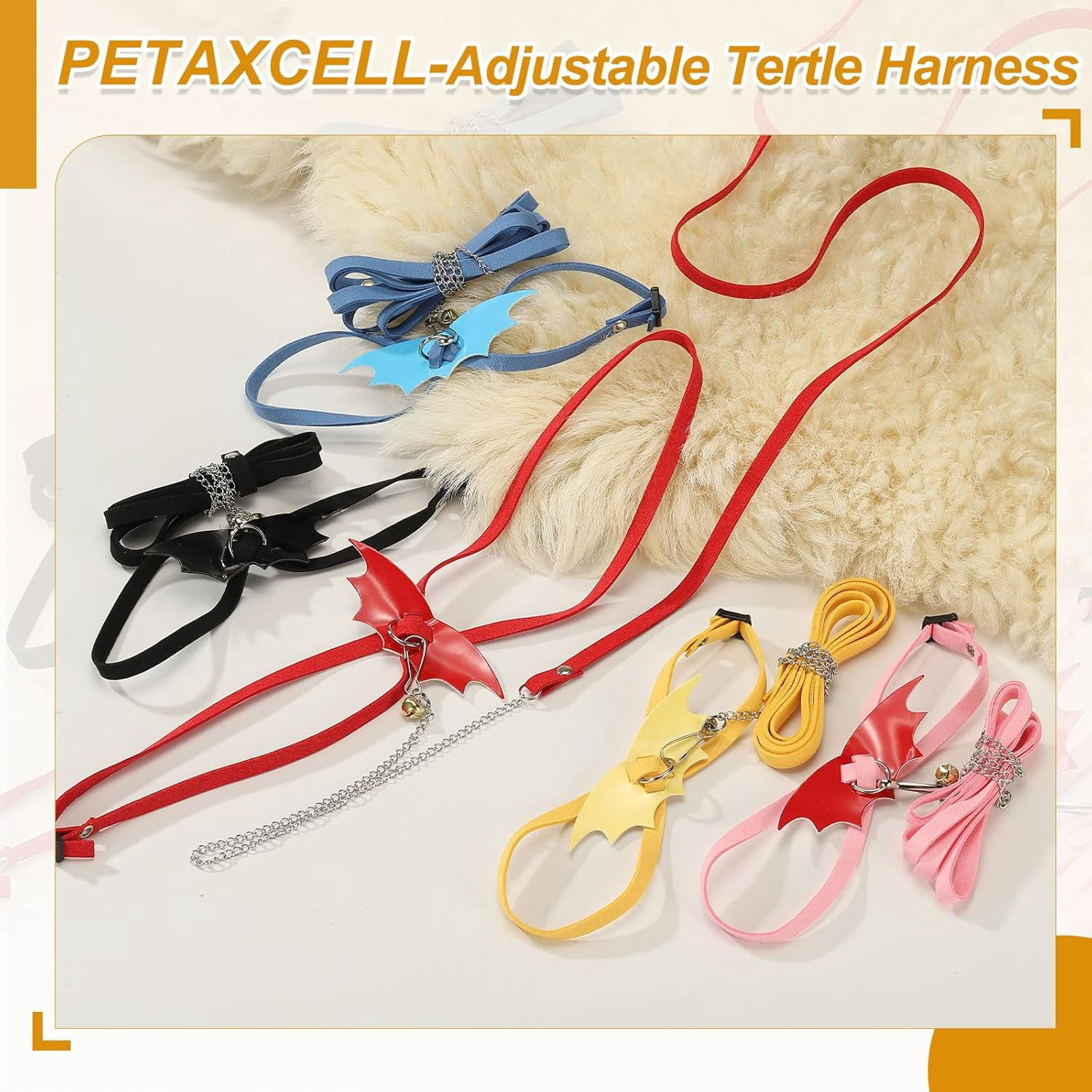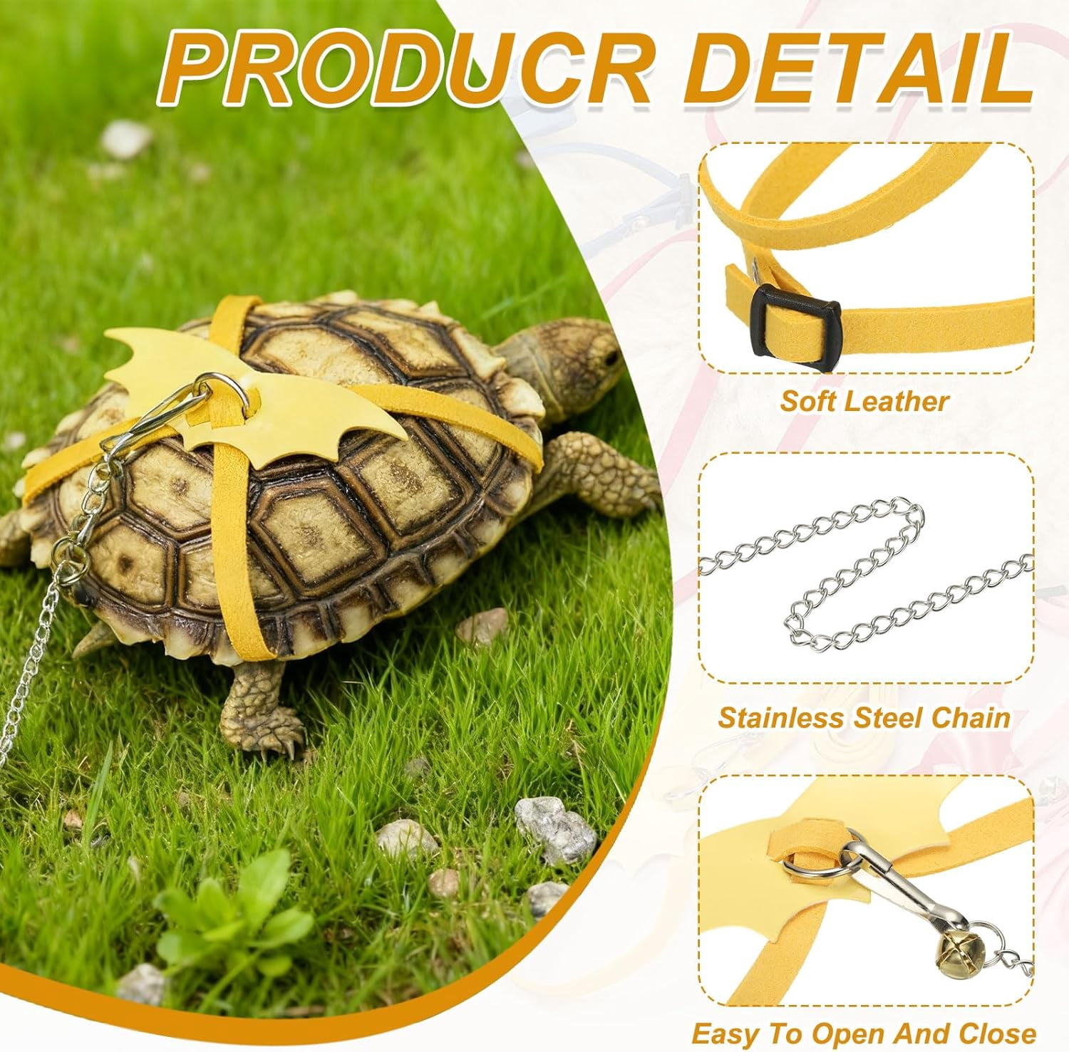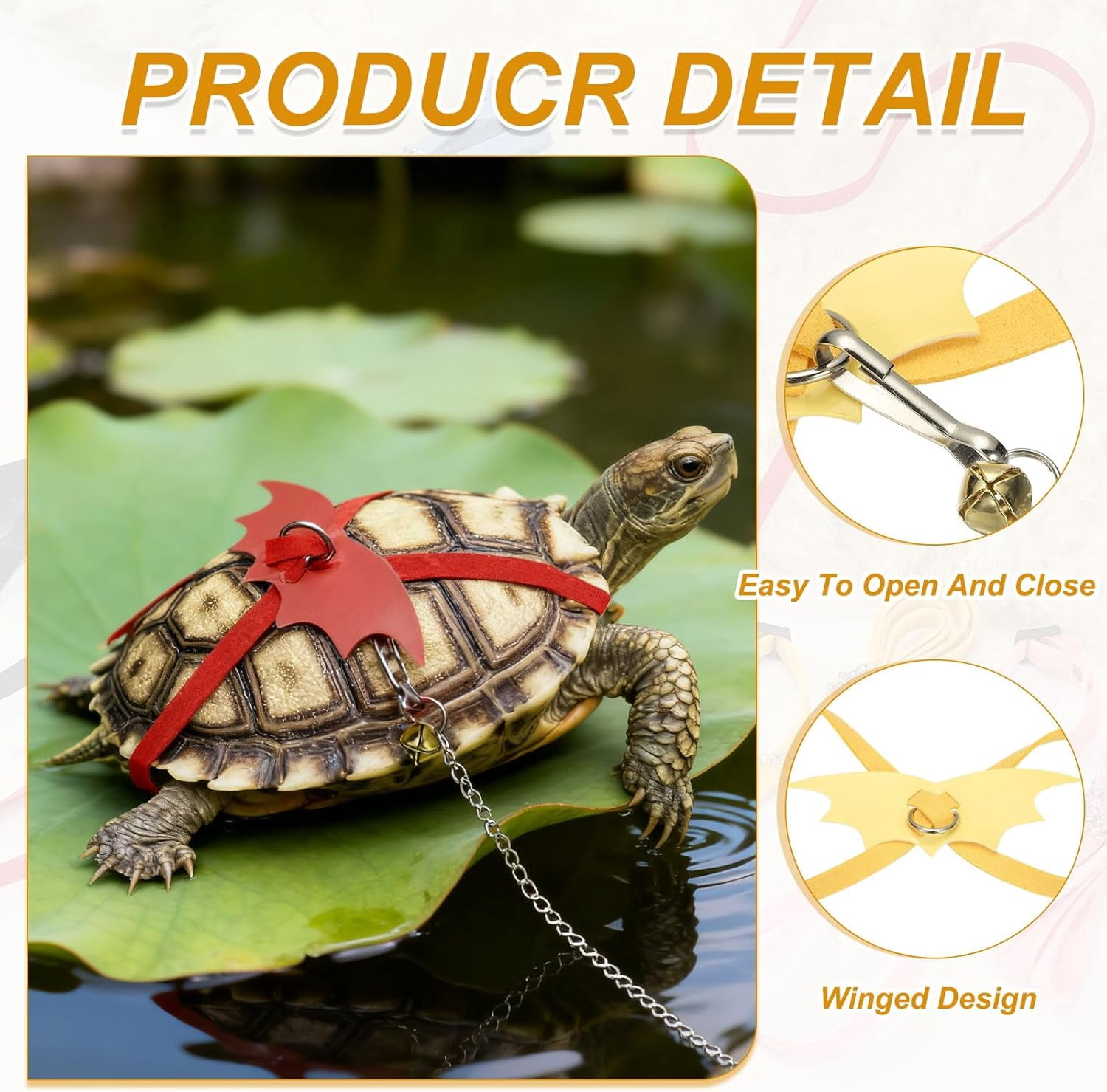 Tortoise Leash Harness, Adjustable Turtle Chest Collar with Bell & Wings, Leather, Large, Black