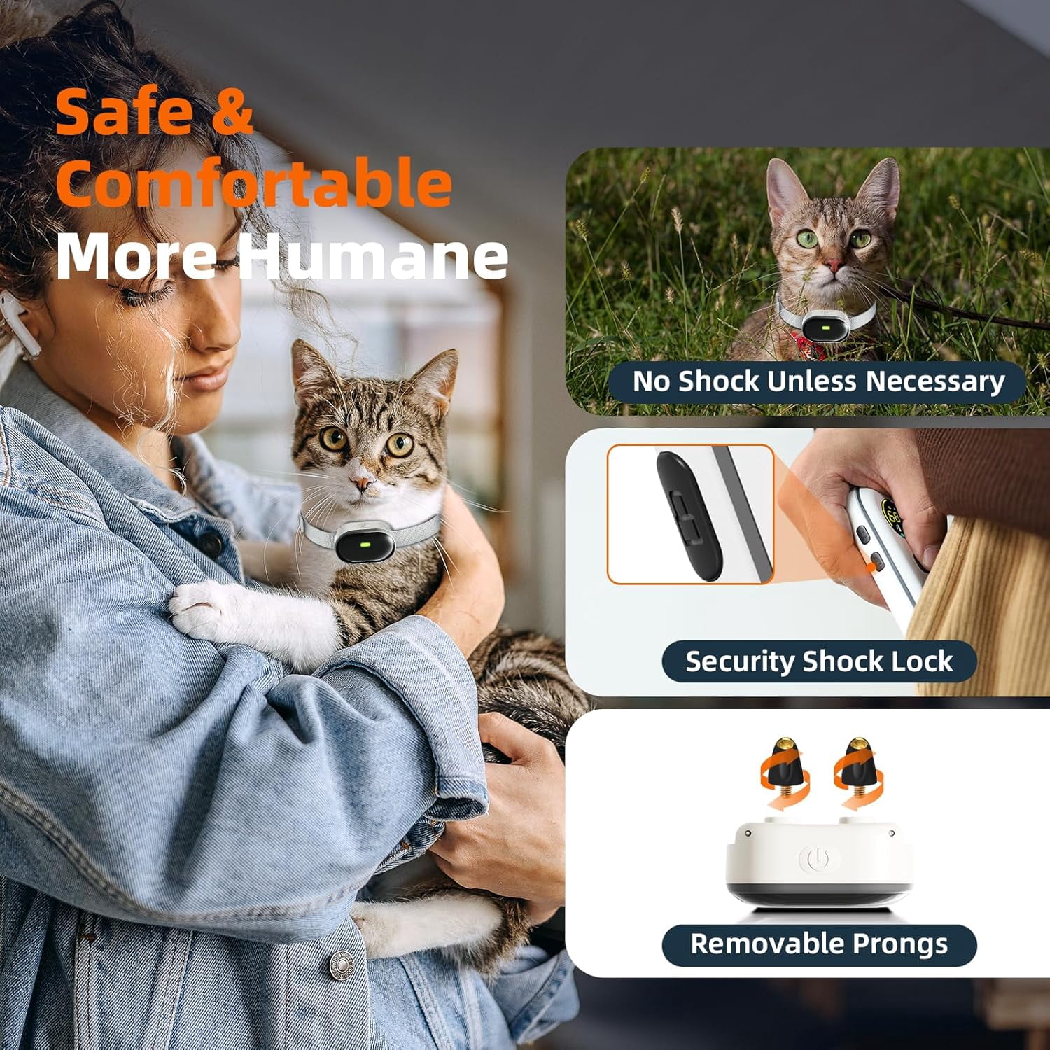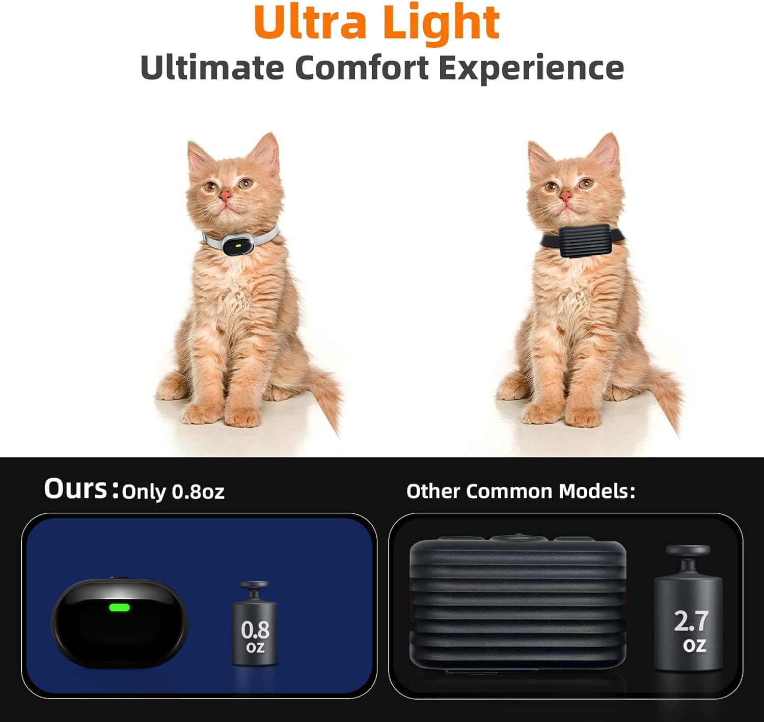 Ultra-Small/Light/Thin Design: The latest 2024 model, featuring an ultra-small/light/thin cat training collar, with dimensions of just 1*1.7*0.79in and a weight of only 0.8oz, perfect for cats of all sizes.