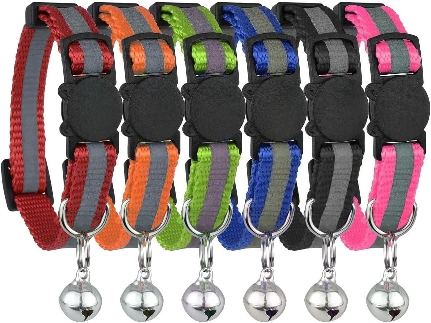 Upgraded Version – Reflective Cat Collar with Bell, Set of 6, Solid & Safe Collars for Cats, Nylon, Mixed Colors, Pet Collar, Breakaway Cat Collar(6-Pack)