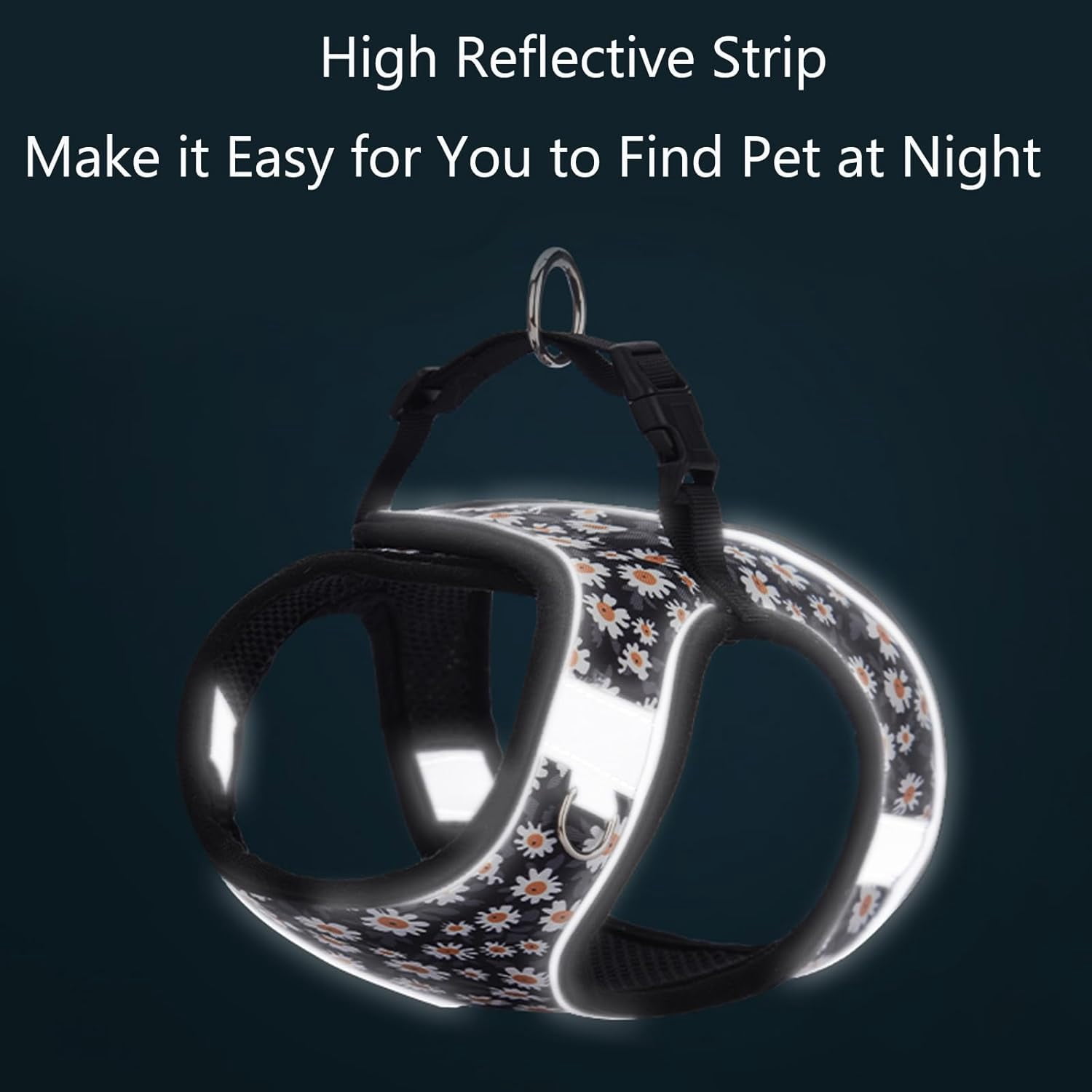 XXS Dog Harness & Leash Set – Step-In Dog Harness for Walking, Running & Training – Puppy Essentials, Cat & Rabbit Adjustable Reflective Vest – Black, XXS 5PCS
